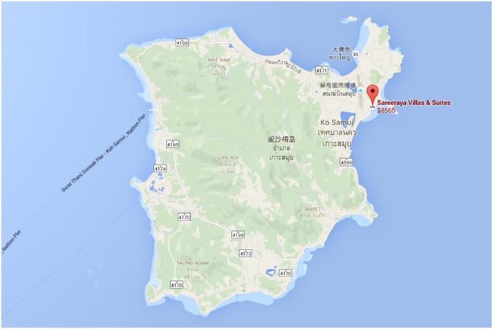 蘇美島雖然是個小小的島嶼,但是飯店多到讓人眼花撩亂....這時候要考慮的因素就很多了...我們應該住在哪個地段??喜歡海景還是山景??連鎖型飯店還是泰國當地的飯店??除此之外也要考慮交通方式是租車,包車還是攔計程車??在多方討論之後第一次的蘇美行兩晚住飯店三晚住山中的VILLA.會選擇Sareeraya的主因是因為同樣的價位(大約六千多塊七千,因為是連續假期)大型的連鎖飯店例如Conrad,洲際,艾美都只能獲得大約38~45平方米的房間,但在Sareeraya卻可以擁有75平方米面海還有戶外大浴缸的房型.加上離機場大約只有15分鐘的車程,又位在查汶大街上,不論要吃甚麼或是買甚麼都很方便!- 6月 28 週二 201617:52